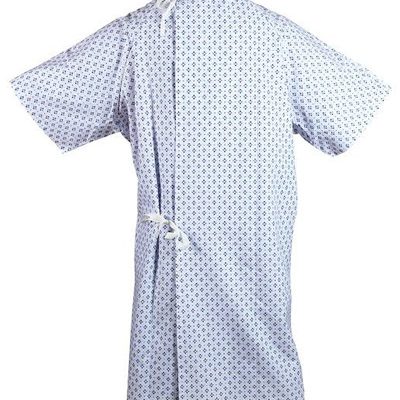 The gown is the clothing worn by the sick or wounded when they are hospitalized in a hospital or rehabilitation facility. It is easy to put on and take off and clean, and it is also convenient for hospital management. The style is probably the same as that of pajamas. The pattern is striped, and the stripes are mostly blue and white. There are also three-color and above ones.